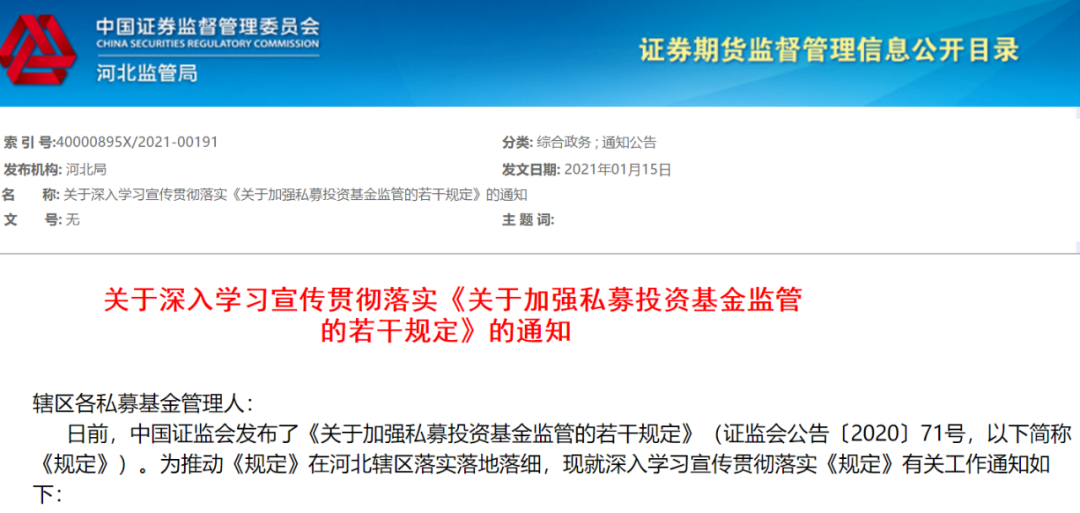 《規(guī)定》發(fā)布后,河北、海南等多地證監(jiān)局也陸續(xù)發(fā)布通知,要求轄區(qū)內(nèi)各私募基金管理人全面學(xué)習(xí)《規(guī)定》,并按照要求進(jìn)行全面自查和整改。